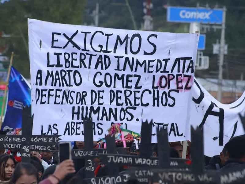 Alrededor de 50 organizaciones y colectivos exigieron la liberación inmediata de Mario Gómez López, defensor de derechos humanos y pareja de Pascuala López López, también defensora de derechos humanos. Mario fue detenido el 24 de enero por policías municipales de San Cristóbal de Las Casas, bajo acusaciones de atentados contra la paz y la integridad corporal y patrimonial de la colectividad y del Estado.
