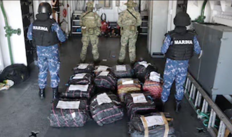 Dos ciudadanos ecuatorianos fueron detenidos cuando navegaban en una embarcación cargada de drogas por las costas de Chiapas.