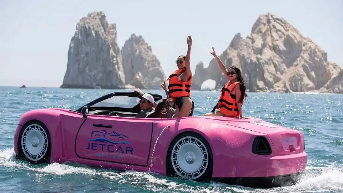 Se trata de un jet car a quien los usuarios de la red no tardaron en llamar el “carro de Barbie” aunque el llamativo vehículo lo único que comparte con la icónica muñeca es el color.