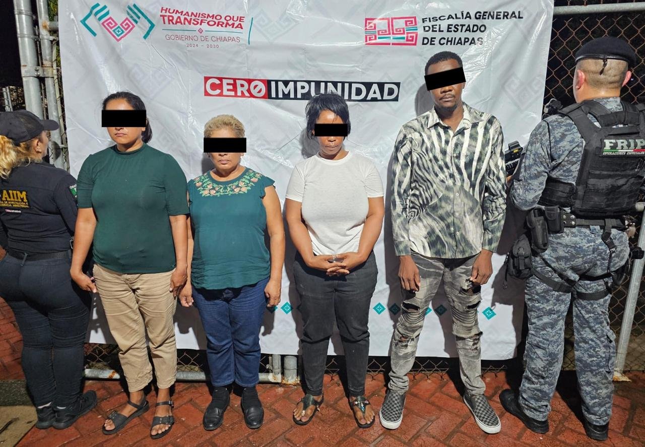 Cuatro personas, dos de ellas de nacionalidad haitiana, fueron detenidas en la ciudad de Tapachula como presuntos responsables del delito de tráfico de menores, cometido en agravio de un menor de edad de seis meses en la ciudad de Tapachula.