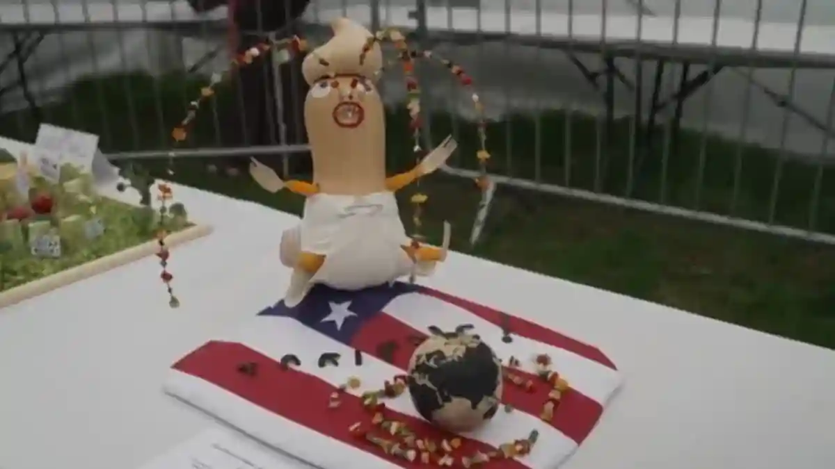 Durante esta edición, los asistentes pudieron observar representaciones como “Cornclave”, una instalación con figuras de cardenales hechas con mazorcas de maíz, aludiendo a la reciente elección papal.