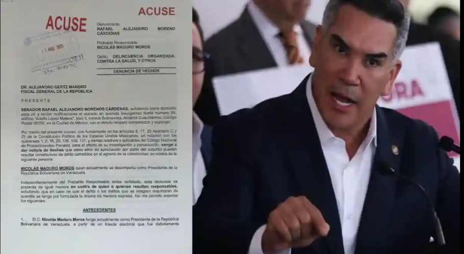 El dirigente nacional del Partido Revolucionario Institucional (PRI), Alejandro Moreno Cárdenas, presentó una denuncia ante la Fiscalía General de la República (FGR) contra Nicolás Maduro, presidente de Venezuela, por presuntos vínculos con cárteles mexicanos y otras organizaciones delictivas.