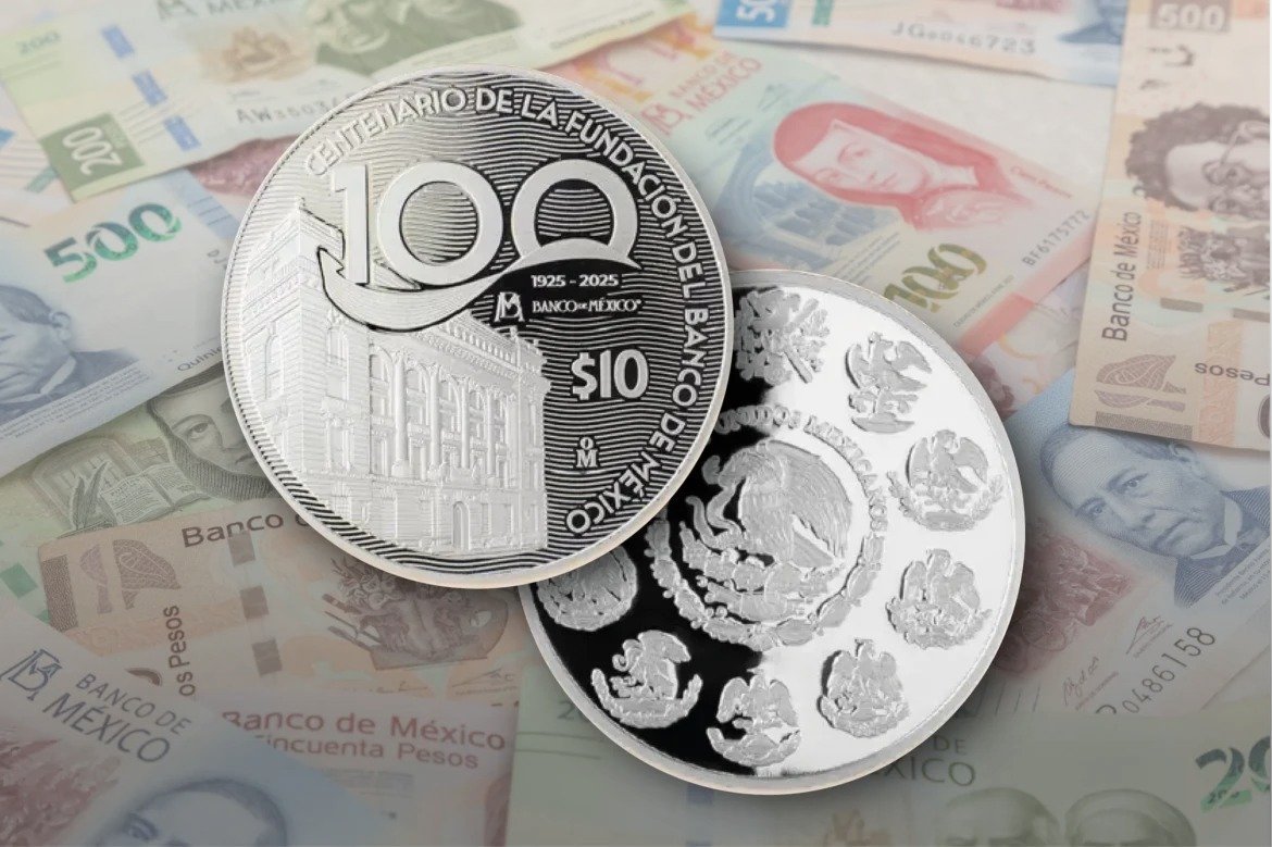 La pieza, acuñada por la Casa de Moneda de México, tiene un valor facial de 10 pesos y contiene dos onzas de plata pura de ley 0.999. En el anverso muestra el Escudo Nacional en relieve rodeado de emblemas históricos y el águila del Códice Mendocino, mientras que en el reverso aparece el edificio principal del Banco de México junto con la leyenda “Centenario de la Fundación del Banco de México”.
