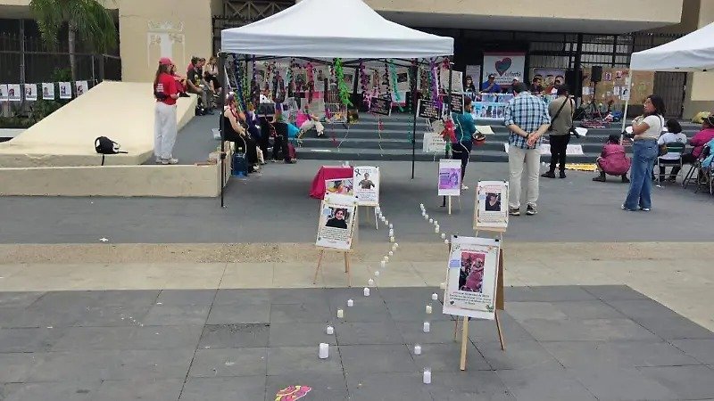 En las gradas de acceso a la entrada principal de Palacio de Gobierno instalaron una mesa donde hablaron representantes de colectivos, en las gradas colocaron una loca con la frase ¿Dónde están? Luego colocaron un corazón con flores rojas, blancas y amarillas, otros corazones de papel colocados con frases exigiendo justicia.