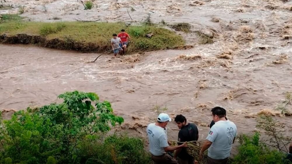 Tiempo después y de manera repentina, comenzó a bajar la creciente, y fue cerca del puente del libramiento, los jóvenes Federico Enríquez Gutiérrez y Francisco Reyes, ambos de 17 años de edad, se encontraban dentro del afluente y quedaron atrapados, pero lograron llegar a un borde en medio del río.