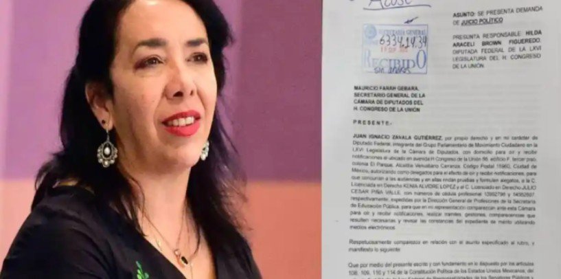 El diputado federal de Movimiento Ciudadano, Juan Ignacio Zavala Gutiérrez, presentó una demanda de juicio político contra la legisladora de Morena, Hilda Araceli Brown Figueredo, por la presunta relación de la diputada durante su gestión como presidenta municipal de Playas de Rosarito en Baja California.