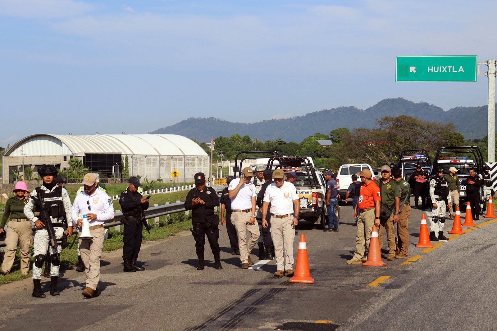 Desde temprana hora, elementos del Instituto Nacional de Migración (INM), la Guardia Nacional y autoridades municipales instalaron un retén en los accesos a la localidad, intentando desviar a los migrantes hacia la autopista. A pesar del operativo, la caravana logró entrar al municipio, pero se encontró con la negativa de las autoridades para acceder al domo deportivo donde organizaciones sociales habían dispuesto alimentos y refugio temporal.