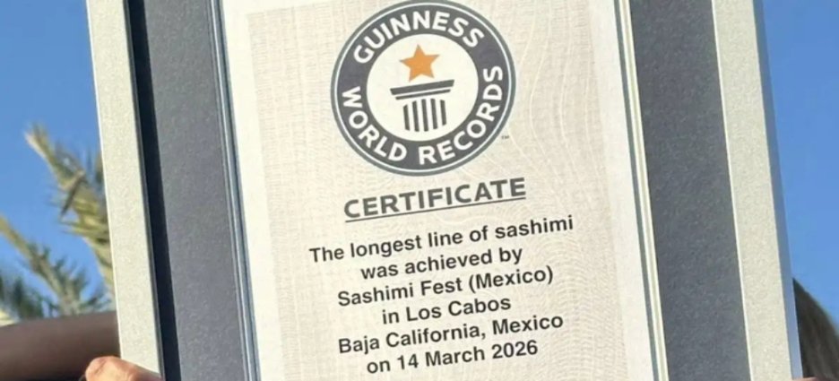 Los Cabos ingresó al libro de los Récord Guinness con el sashimi más largo del mundo elaborado la tarde de este sábado en la Plaza